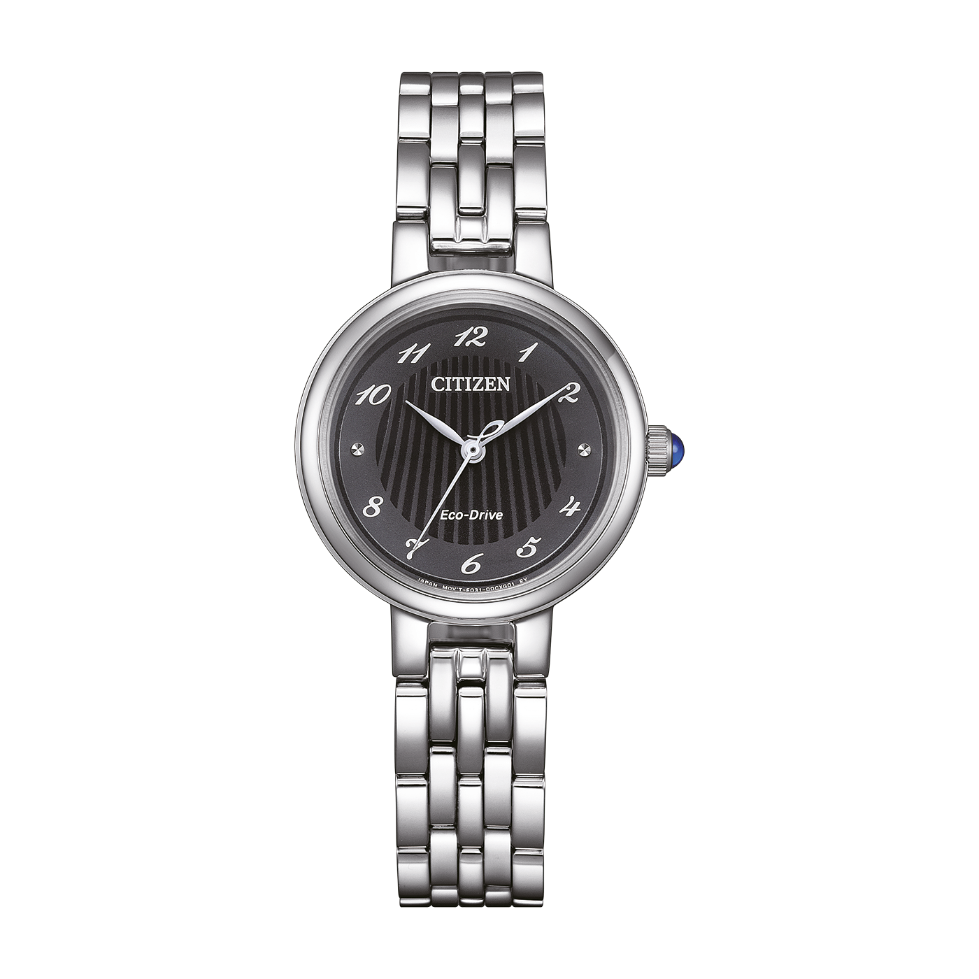 This Citizen L Eco-Drive watch impresses with its elegant silver-coloured stainless steel case (Ø 27.7 mm, height 7.73 mm) and black dial with Arabic numbers. The scratch-resistant sapphire glass provides effective protection against damage. Powered by the precise E031 analogue quartz movement with Eco-Drive technology, the watch does not need battery replacement and offers a power reserve of up to 180 days. The battery discharge indicator offers additional safety. The solid stainless steel bracelet with double push clasp guarantees high wearing comfort and a secure fitting. Water-resistant up to 5 bar, this watch is the perfect partner for everyday life. Weight: 60 g.