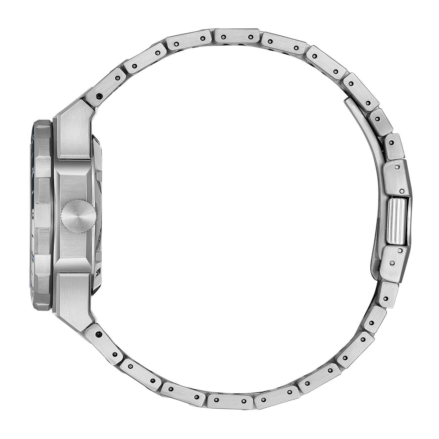 Featuring the calibre 9054, this watch offers a 24-hour display, GMT hands, a date function and anti-magnetic protection. The silver-coloured stainless steel case measures approx. 13.52 mm in height with a diameter of 41 mm and features anti-reflective sapphire glass and a glass back. The solid stainless steel strap with double safety clasp ensures a safe fit. With water resistance up to 10 bar, a power reserve of 50 hours and an accuracy of -10/+20 seconds per day, the Series 8 impresses with its functionality and elegance – perfect for serious wearers who value both style and comfort.