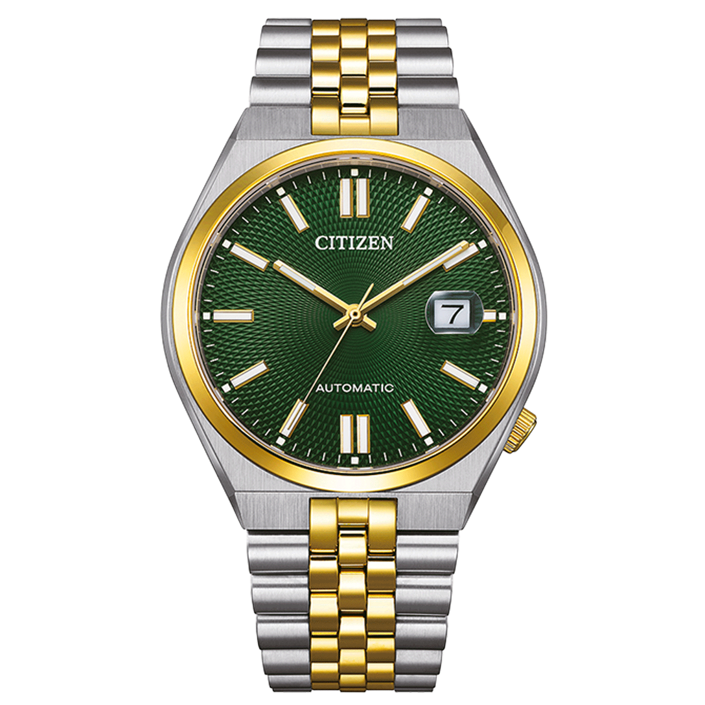 Two-tone coloured stainless steel case with a diameter of approx. 40 mm and a height of 11.7 mm. The green dial with clear line indices is protected by scratch-resistant sapphire glass. Powered by the mechanical calibre 8310, the watch offers a power reserve of 60 hours with a rate accuracy of -20/+40 seconds per day. The solid stainless steel bracelet with double-secured push clasp ensures a secure fit and high wearing comfort. With a water resistance of up to 5 bar, this watch is both stylish and suitable for everyday use.